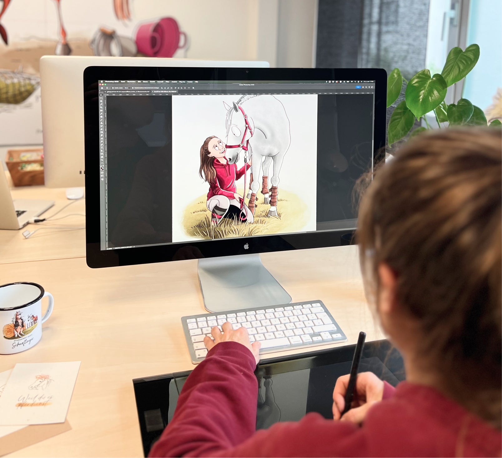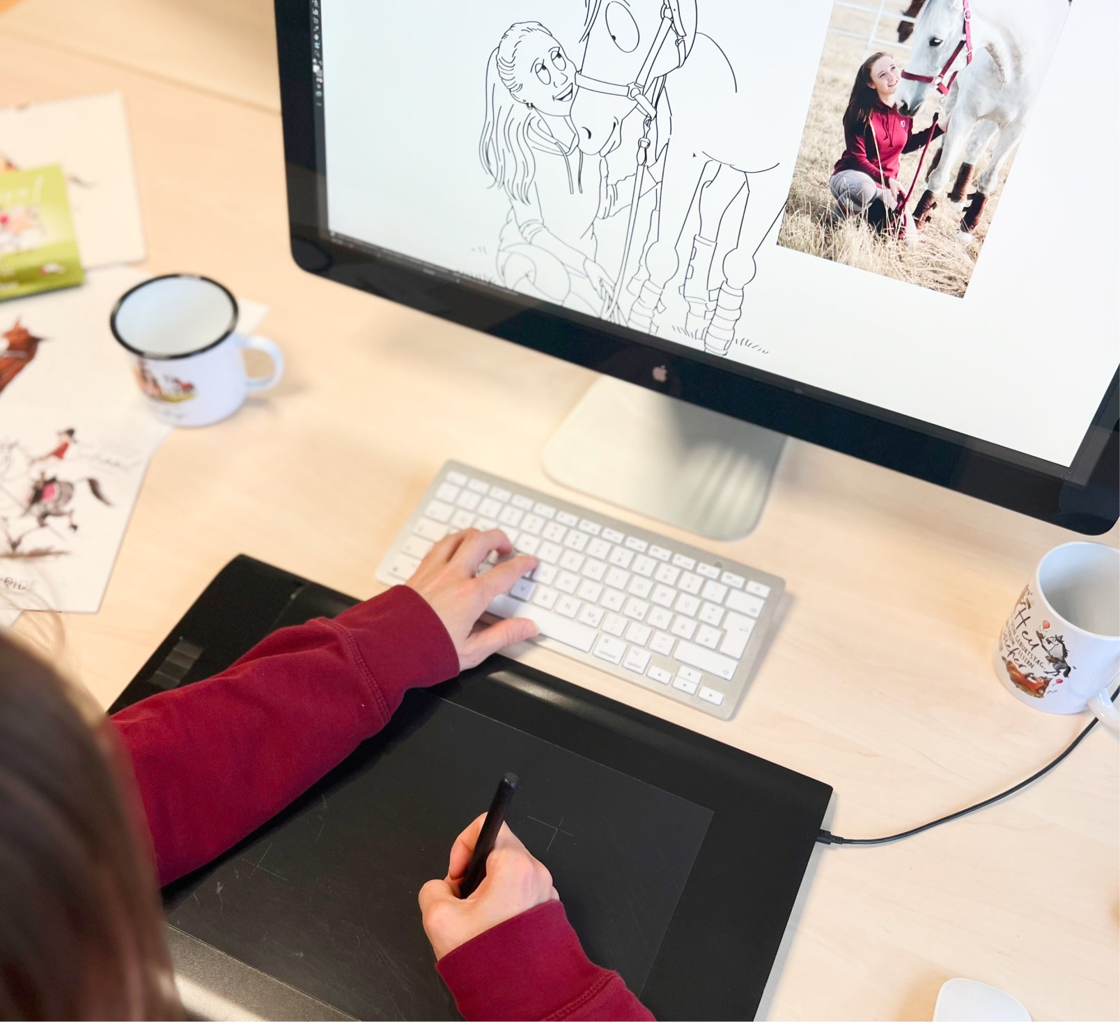 Ob Familienfoto oder Foto mit Stallfreunden: Wir verewigen euch in einer originellen Illustration mit ganz viel Herz und Charakter. Einfach Lieblingsfoto hochladen, Wunschnamen eingeben und unsere Gründerin Nadja verwandelt dein Foto in euer ganz persönliches Unikat à la mrs. RIDE. Du erhältst deine Zeichnung als hochauflösenden Download und optional auf deiner neuen Lieblingstasse. Eine Erinnerung für die Ewigkeit und perfekt auch als Geschenk.