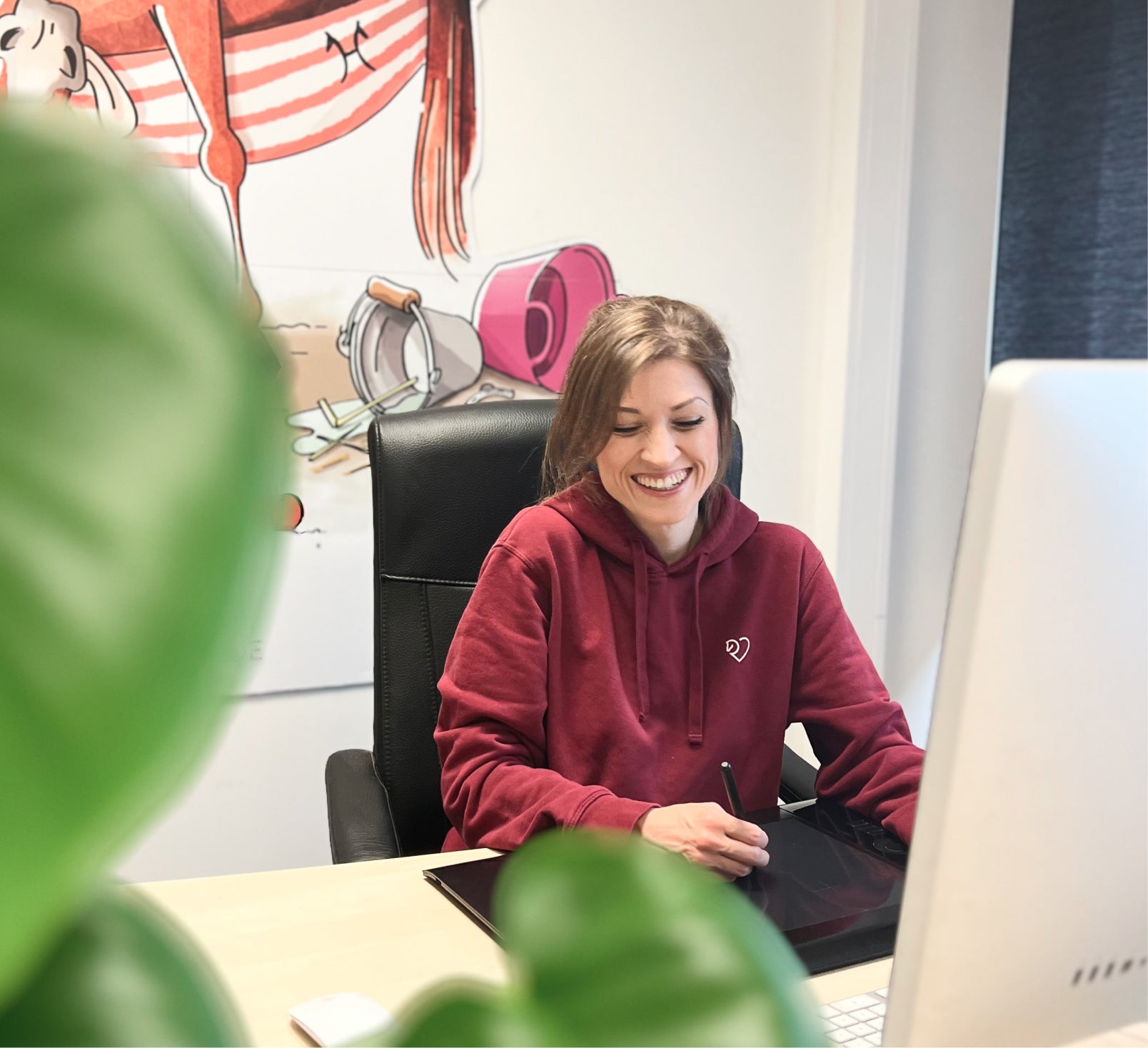 Dein Unikat wird von unserer Gründerin & Illustratorin Nadja aktuell noch höchstpersönlich gezeichnet. Eine Zeichnung dauert dabei im Durchschnitt zwischen 2 und 4 Stunden. Keine KI, kein Generator. Echte Handarbeit mit ganz viel Herz.